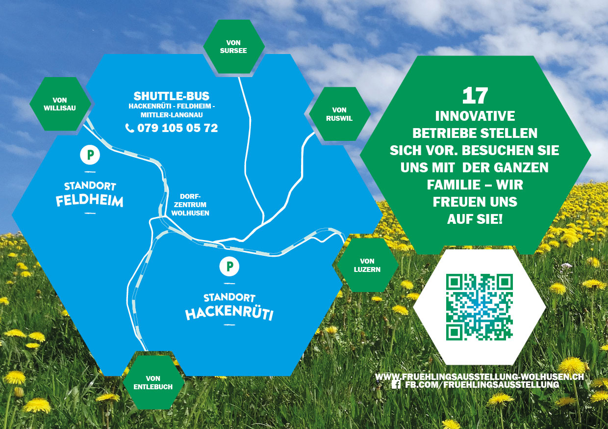 Ein Shuttle-Bus führt die Besucherinnen und Besucher bequem zwischen den Gewerbegebieten Hackenrüti – Feldheim – Mittler-Langnau hin und her. Es sind Parkplätze vorhanden: „Die Ausstellung ist ein Anlass für die gesamte Familie. Wir freuen uns auf interessante Gespräche und viele Erlebnisse.